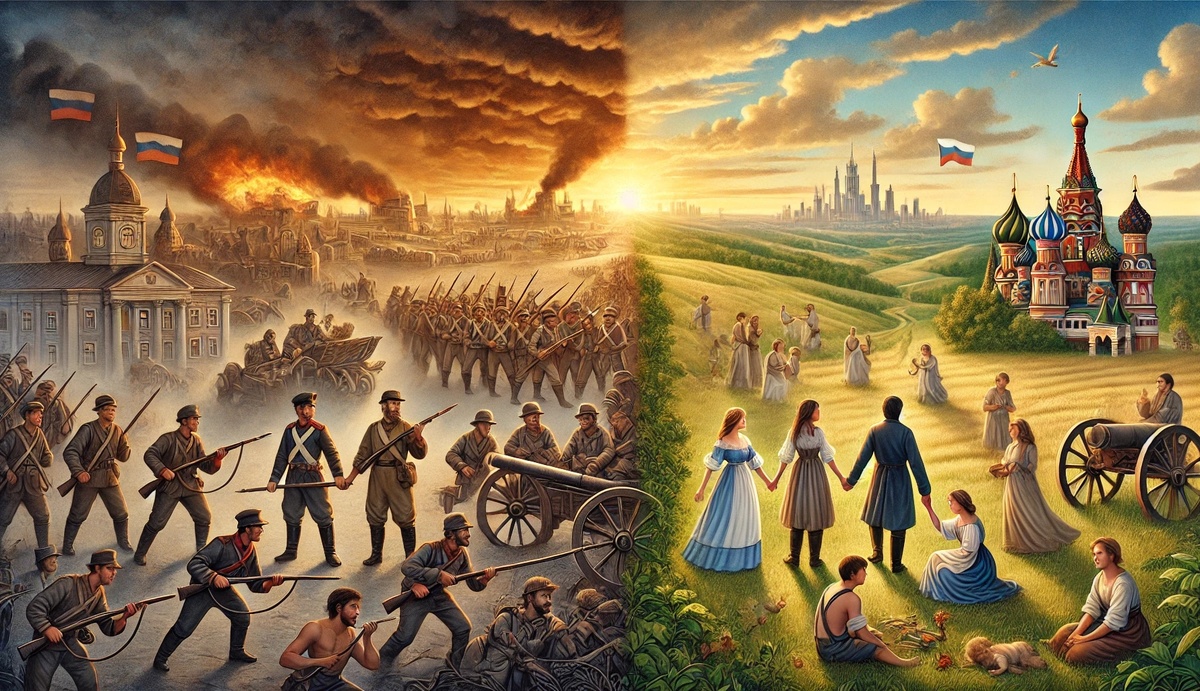 «Война и мир» — это масштабный роман-эпопея Льва Толстого, в котором переплетаются исторические события, философские размышления и судьбы множества персонажей. Действие романа охватывает период с 1805 по 1812 годы, когда Россия противостояла наполеоновским войнам.