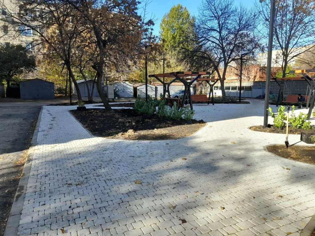 Раньше на участке от ул. Карякина до детского сада № 216 стояли незаконные гаражи и валялся мусор. Территорию очистили и создали новое общественное пространство в рамках краевой программы по инициативному бюджетированию. Сквер носит имя Героя России С. В. Палагина. Там высадили новые кустарники, выложили плиткой тротуарные дорожки и установили скамейки. Постарались максимально сохранить существующие деревья. Новые появятся в ближайшее время. В дальнейшем власти города планируют продлить зеленую зону с комплексным благоустройством территории.