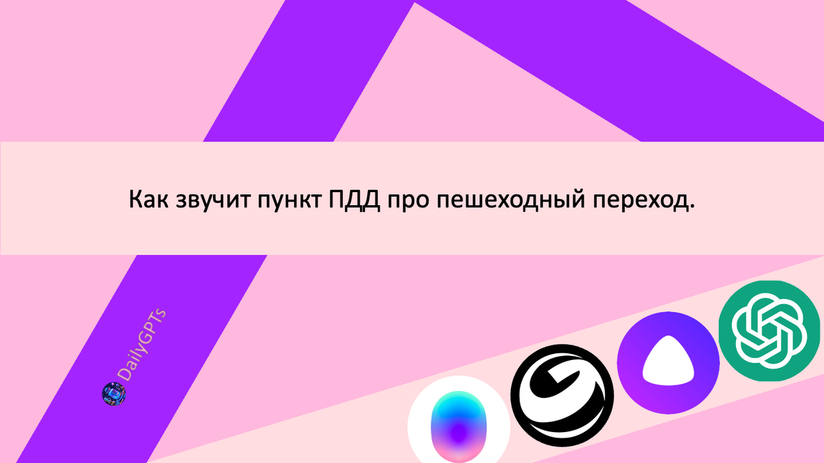 Иногда нужно узнать, а как же в ПДД записан тот или иной пункт правил. Например, спор с друзьями остановил инспектор. Но искать книжку либо долго, либо её вообще нет. Искать в интернете тоже не быстро. Давайте посмотрим, что знают наши ИИ про ПДД. Зададим простой и прямой вопрос. Как звучит пункт ПДД про пешеходный переход. Базово что-то они знают. Но как-то по-разному пересказывают. Номера статей путают. В целом пользоваться можно, но нужно быть осторожным. Мы в: ВК Телеграм