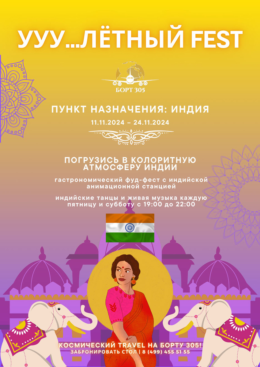 В ресторане «Борт 305» проходит этно-гастрономический фестиваль «Ууу…летный fest» и следующая страна, с которой познакомятся гости — Индия! Погрузитесь в атмосферу Индии на «БОРТу 305», не выезжая за пределы города! Узнать подробнее о фестивале — bort305.ru/festivali Рекомендуем бронировать столы заранее: 8-499-455-51-55 Адрес: Зеленоград, корпус 305 Соцсети ресторана: Вконтакте, Инстаграм (запрещён в РФ) Реклама ООО «АНКОР КЛАБ» ИНН:7735195013 erid:2VSb5wEoaGx