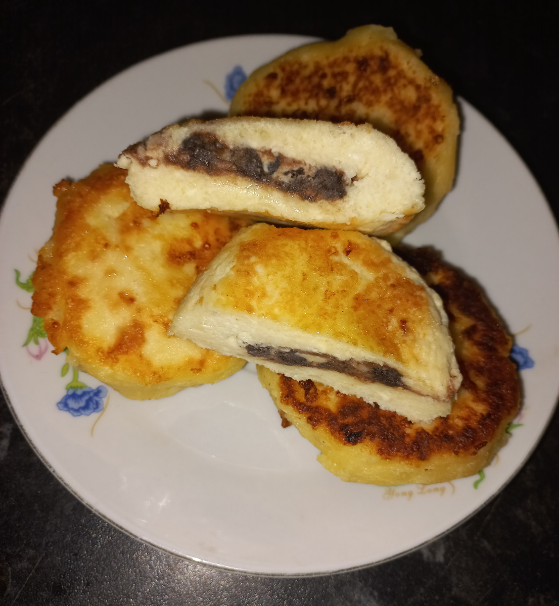 5. Посыпать руки мукой. Небольшую часть массы столовой ложкой выложить себе на руку, сверху - кусочек шоколада и сформировать сырник. 6. Затем обжарить на растительном масле с 2-х сторон до золотистого цвета.