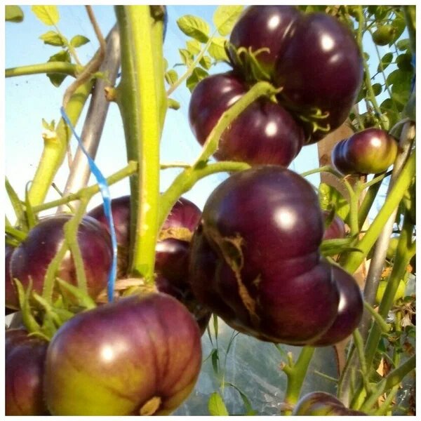 Сорт универсальный, индетерминантный, пригодный для выращивания как в теплице, так и в открытом грунте. Высокорослый, мощный, раскидистый, среднеоблиственный. Куст высотой 1,8 м. Имеет простое соцветие. Требует подвязки, пасынкования и формирования. Формировать лучше в 2 стебля. Сорт обладает хорошим иммунитетом, устойчив ко многим заболеваниям. Плоды не подвержены растрескиванию.. Собранный урожай может храниться до 15 дней. Назначение универсальное. Томаты круглой, слегка приплюснутой формы. Вес может составлять 350-800г,а иногда и более На кисти образуется 5-6 плодов. Томаты покрыты плотной гладкой кожицей, не растрескиваются. Имеют интересную расцветку. Незрелый плод окрашен в красно- розовые оттенки с сине-фиолетовыми плечами. В процессе созревания углубление возле черешка становится почти чёрным с мягким плавным светло-фиолетовым переходом к розовой вершине. На разрезе мякоть яркая, блестящая, сочная, плотная красного или глубокого розового цвета. Томаты обладают приятным сладк