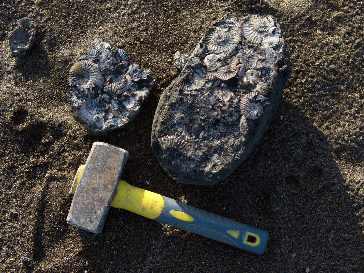 Любители палеонтологии (особенно начинающие) нередко щеголяют геологическими молотками. В принципе, все в них хорошо: цельнометаллическая рукоятка, удобная форма бойка, качественная сталь... Но вот только цена начинается от нескольких тысяч рублей — и далее до бесконечности. А утверждение о том, что чем дороже молоток, тем лучше будут находки — сродни тому, что вкусный ужин может быть приготовлен только в очень дорогой кастрюле. Такой молоток себя оправдает, если ездить на поиски окаменелостей каждые выходные. Для поисков «от раза к разу» неплохой вариант — молоток каменщика, или даже обычный хозяйственный молоток с квадратным бойком с одной стороны и острым клювом с другой. Оптимальный вес бойка для известняков — 400-600 г: слишком легким практически невозможно раскалывать большие куски породы, а работать тяжелым быстро устанете.
