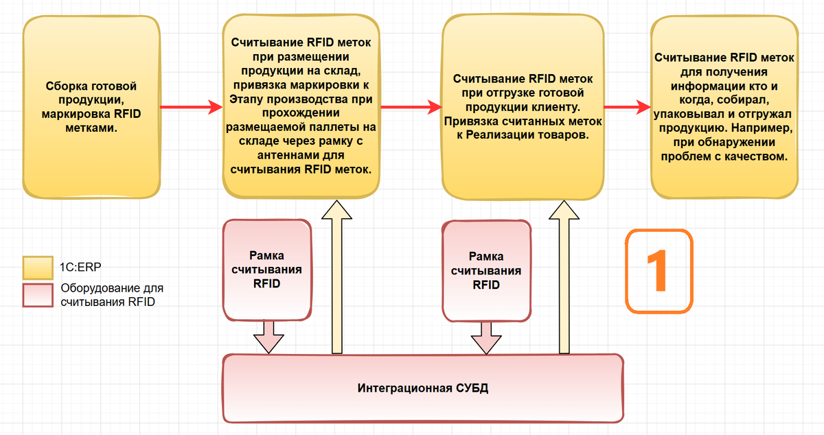 Автоматическая система контроля "Личное клеймо" Запустили в работу систему по контролю отгружаемой продукции, аналог системы "Личное клеймо", но в автоматическом режиме, с помощью RFID-меток. Фото №1 - Принципиальная схема работы интеграции 1С:ERP с контроллером антенн. Фото №2 - Антенна на входе в автоматический склад (ролик 1, ролик 2) Фото №3 - Антенна в отгрузочных воротах Фото №4 - Котроллер для считывания данных с антенн (обрабатывает 4 антенны) Фото №5 - Пример полученных данных в интеграционной базе данных Наша работа состояла из: 1) Подбор поставщика RFID-меток 2) Подбор поставщика антенн и контроллеров для считывания RFID-меток 3) Настройка сохранения данных в интеграционную базу данных 4) Доработки в 1C:ERP для связки Этапа производства и Реализации товаров с RFID-меткой В итоге мы сохраняем данные кто когда собирал и отгружал продукцию. Язык программирования: 1С Хеш теги: #1С , #ERP , #автоматизация , #бережливоепроизводство