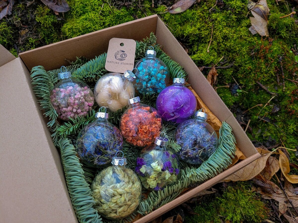 Друзья, привет! Мы производим уникальные новогодние подарки – елочные шарики с сердцевиной из сухоцветов. Знаем, какой трудоемкой задачей становится подбор запоминающихся корпоративных презентов на Новый Год. Поэтому расскажу вам, почему наши наборы станут идеальным подарком для ваших партнеров, коллег и клиентов. А в конце обзора вас ждёт промокод на скидку в 12% 😉 Мы собираем каждый наш шарик вручную и самостоятельно. Изначально для нас это было просто сезонным хобби, но за 3 года мы создали команду и наладили массовую сборку наборов, при этом сохранив стандарты по наполняемости и качеству укладки каждой микроскопической веточки сухоцветов. Теперь мы можем позволить себе выполнять для вас крупные заказы любого объема. Для компаний, разделяющих принципы ESG: мы используем образцы природного происхождения, которые гармонично смотрятся в качестве элементов декора. Все сухоцветы родом из России, при этом каждый имеет свою особенную мифологию. Например, Лимониум в Древней Руси считали во