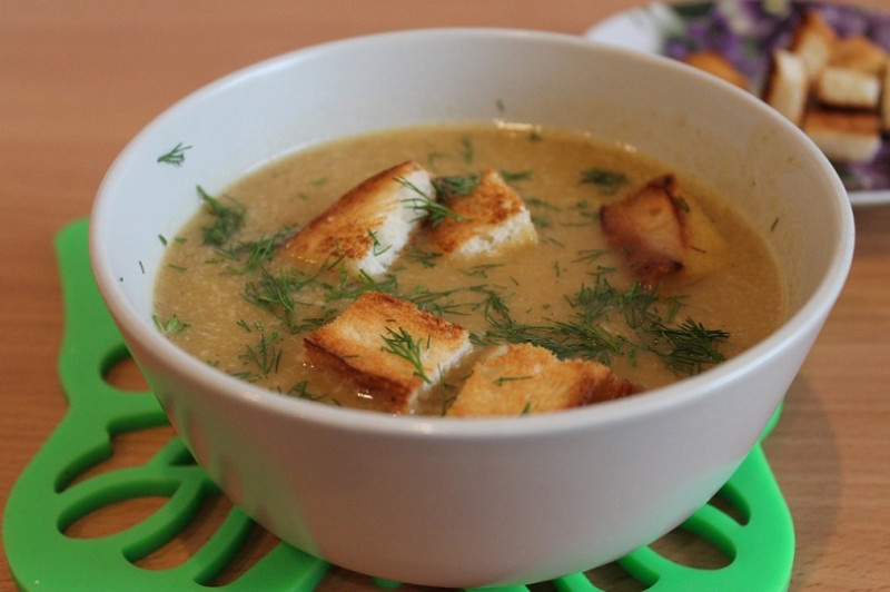 Бульон из говяжьих бульонок (можно сварить постный суп, тогда вместо бульона вода)