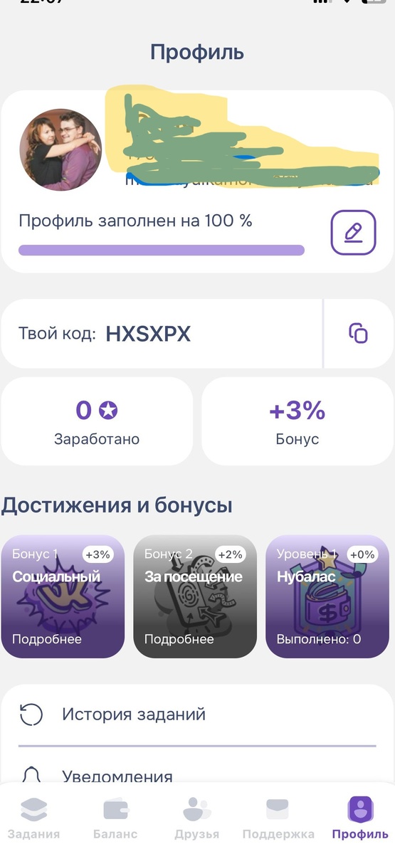 Давно себе искала небольшую подработку в интернете пока сидела в декрете. Сначала знакомая подписала меня на платформу Инстарт. Там как аз можно было заплатить 1500 рублей, чтобы тебе дали доступ к самым топовым приложениям по заработку на заданиях. Честно скажу, своих денег это не стоило. Эти сайты я знала и без доступа. Сначала там давалось много опросников таких как Экспертное мнение, Анкетка, Ютлинк и прочие, пробовала первый. Для того, чтобы заработать первую 1000 рублей, у меня ушло полгода, так как снять можно было только от 1000 рублей. Заданий приходит очень мало, половину опросов проходишь по полчаса, а потом сайт пишет, что вы не проходите под опрос. Яндекс Дзен вообще доход не приносит, хотя я на монетизации я давно. Анкетка и ютлинк вообще приносят копейки. И вот недавно нашла такие классные сайты, как GuruApp и AppStart. Для первого заходим в профиль, заполняем его и сразу приходят задания. Если ввести промокод который я напишу ниже вам будет небольшой бонус Потом прихо