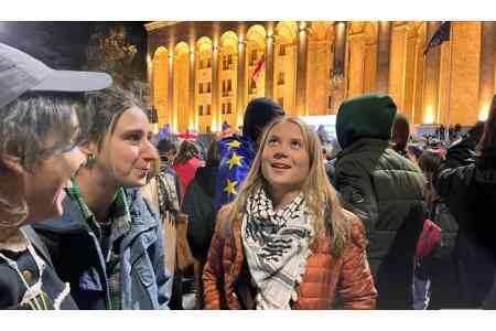 АрмИнфо. Одна из ведущих мировых активисток в области охраны окружающей среды, шведка Грета Тунберг уже находится Армению. Об этом сообщила инициатива "Armenian Climate Justice" на своей странице в Фейсбук. Отмечается, что на границе между Арменией и Грузией Грету Тунберг встретил председатель общественной организации "Центр общинного сплочения и поддержки" Олег Дулгарян вместе с коллегами. Как сообщили члены армянской инициативы, шведская экологическая активистка бойкотирует Конференцию ООН по изменению климата (COP29) из-за ее проведения в Азербайджане. "Вместо этого она решила выразить солидарность с Арменией. Это решение подчеркивает ее неизменную приверженность защите прав человека, поскольку ранее она выступала против нарушений прав человека в Азербайджане и этнической чистки армян в Арцахе", - говорится в сообщении. В связи с этим Армянская инициатива по климатической справедливости планирует провести параллельные мероприятия во время COP29, включая конференцию 14 ноября 2024 г