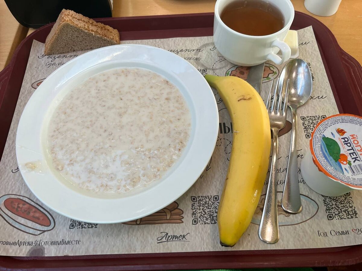 Путевка в легендарный лагерь стоит больше 120 тысяч, и, конечно, родителям интересно - чем же будет питаться их дитя за такие, прямо скажем, немалые деньги. Специально попросила крестницу фотографировать то, что она берет с линии раздачи (шведский стол), чтобы теперь показать вам. Завтраки редко фоткала - он стандартный, всегда выбор из нескольких каш, фруктов, на фото видно, что дают йогурты Из фруктов есть не только бананы, но детииотдают им предпочтение, потому что, съесть, к примеру, апельсин поребуется больше времени - почистить, помыть руки от сока... На этом фото кроме плова и салата видно соломку и сок с названием лагеря, А тут - булочка и вода. Мне кажется это приятная фишка. Но вернёмся к еде: Как видим, есть в меню и салаты. Надеюсь, крестница ела их, а не ставила на поднос для фото... Я бы не отказалась от такого салатика с ветчиной. Еще бы к нему майонезик... Здесь салатик тоже выглядит аппетитно, а от вида жареной картошечки просто слюнки текут. Мне кажется, или на фото