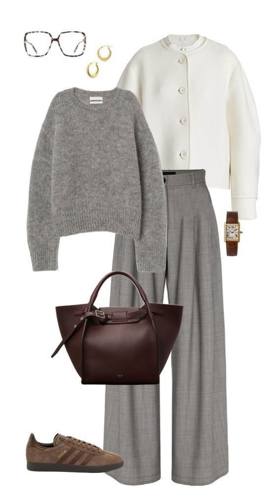 Аксессуары играют ключевую роль в любой капсульной коллекции, так как они помогают преобразить каждый образ, делая его уникальным. На изображении представлены разнообразные сумки, обувь и головные уборы, которые дополняют наряды и придают им завершённый вид. Например, красная мини-сумка с тиснением под крокодиловую кожу добавляет яркий акцент к нейтральным сочетаниям, позволяя выделиться и создавать более выразительные образы. Здесь также представлены как повседневные кроссовки, так и элегантные лоферы и ботинки, что позволяет создавать образы для разных случаев и настроений. Аксессуары помогают подчеркнуть стиль капсульного гардероба, не перегружая его. Шерстяная шапка и крупные солнцезащитные очки, например, придают непринужденность и создают атмосферу уютного, но стильного зимнего образа. Это особенно актуально в холодное время года, когда можно экспериментировать с многослойностью и дополнительными элементами, оставаясь при этом в рамках своего основного гардероба. Такой подход де