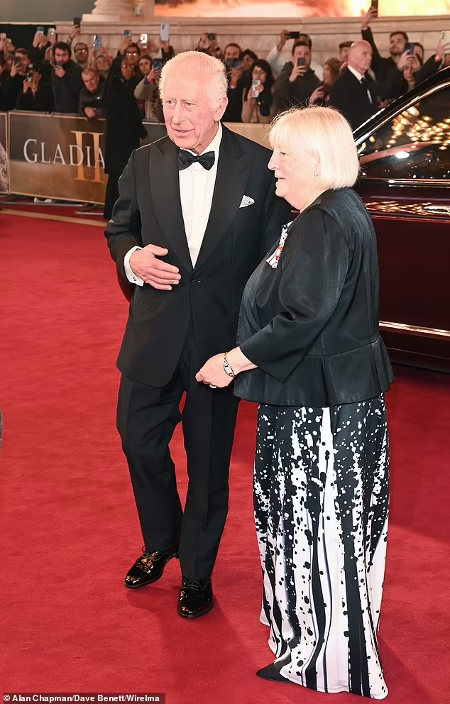Его Величество прибыл на мировую премьеру блокбастера "Гладиатор II" как кинозвезда, подъехав в своем государственном лимузине Bentley на Лестер-сквер. Канун своего 76-го дня рождения король Карл III проведет за долгожданным фильмом Ридли Скотта. К сожалению, как уже сообщалось ранее, королева Камилла не смогла сопровождать супруга из-за того, что она по-прежнему выздоравливает после болезни. Но она очень мило извинилась перед Ридли Скоттом, на предшествовавшем премьере королевском мероприятии - приеме в честь столетия благотворительной организации кино и телевидения в Букингемском дворце. Она сказала участвовавшему в приеме Ридли Скотту: - Мне очень жаль, что я не приду сегодня вечером. Я бы все это время кашляла. Режиссер сжал ее руки и сказал, чтобы она вообще не волновалась, но королева, конечно, свое решение не изменила. Так что Карлу III пришлось отдуваться за все королевское семейство в одиночку. Это резко контрастировало с привычной картиной, когда на такого рода мировые пр