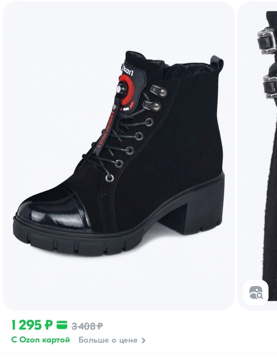 Получился, значит, у меня тут забавный момент: я на протяжении нескольких лет покупаю себе обувь в "Kari", т.к. всегда нахожу низкие цены на распродажах, использую баллы да и в целом присматриваюсь к акциям, но в один из дней, когда я просто смотрела разные товары на "Ozon", рекомендации выдали мне ботинки. И все бы ничего, но буквально пару дней назад я смотрела на них в "Кари", сфотографировала для себя название модели, чтобы не потерять, и решила подумать о возможной покупке.