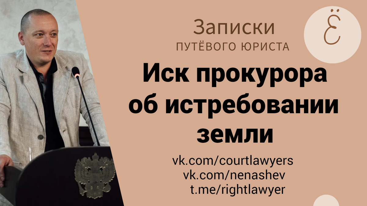 Публикую текстовую версию записки от 22.11.2024 г. Посмотреть видеоверсию можно ЗДЕСЬ. В видеоверсии есть ссылка на реквизиты судебного акта, а также мои комментарии к этому делу. Прокурор обратился с иском об истребовании из незаконного владения гражданина земельного участка. Требования обосновывались тем, что участок был предоставлен гражданину незаконно, поскольку не подлежал приватизации. Издав акт о предоставлении земли, местная администрация превысила свои полномочия по распоряжению участками и передала участок, находящийся в государственной собственности. Также прокурор ссылался на то, что участок выбыл из государственной собственности помимо воли органа, имевшего исключительные полномочия распоряжаться такими участками от имени государства. Суды трех инстанций удовлетворили заявленные требования. Верховный Суд РФ, рассмотрев дело, указал следующее. С момента предоставления участка, до момента подачи иска прошло более 10 лет. За это время, у участка сменилось несколько собственн