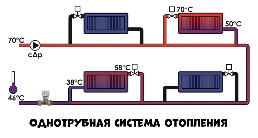 В зависимости от того, какая схема монтажа используется, однотрубная система отопления бывает: