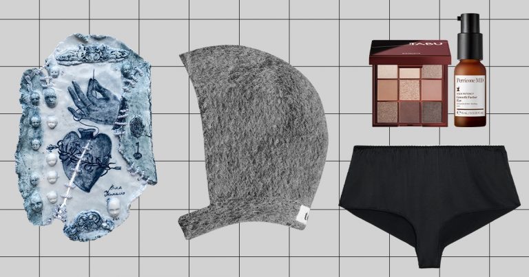 А также костяной фарфор, откровенная женская одежда для вечеринок и очень много новой косметики. Стразы, шелк, бархат, кружево — в новой вечерней коллекции Limé Studio The Front Row, как водится, много женских образов для новогодних вечеринок. Несмотря на строгую цветовую гамму (монохром, золото, серебро), сами вещи довольно откровенные. Бренд предлагает носить блейзер с бантами (9999 руб.) на голое тело, не стесняться гигантских цветов в области декольте на платье-мини (6999 руб.) и комплектов из прозрачных кружевных топов и юбок с объемным бантом и высоченным фронтальным разрезом спереди (3999 руб. и 6999 руб. соответственно). Для последнего предусмотрительно выпустили парадные шелковые трусы (2599 руб.). Бренд, правда, называет их шортами. Локальную марку Tête bonnet придумала Анастасия Орлова, почувствовав волну интереса к вещам ручной работы. Создаются фактурные чепчики (7000 руб.), разноцветные береты кроше (7000 руб.), шапки-петушки (6500 руб.) и другие головные уборы в ностальг