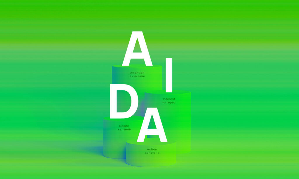 AIDA — это аббревиатура, которая расшифровывается как Attention (внимание), Interest (интерес), Desire (желание) и Action (действие). Это модель, описывающая этапы, через которые проходит потребитель, взаимодействуя с рекламой или маркетинговым сообщением.