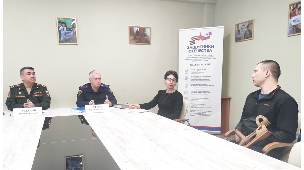 В филиале фонда «Защитники Отечества» в Брянской области состоялся личный прием участников специальной военной операции и членов их семей. Его провели исполняющий обязанности руководителя следственного управления Следственного комитета России Сергей Старов и военный комиссар региона Ильфат Абзалов. Вопросы заявителей касались мер социальной поддержки участников боевых действий, порядка и сроков перечисления федеральных и региональных. Также шла речь об установлении местонахождения родственников, находящихся в зоне проведения СВО. По всем вопросам даны разъяснения, оказана необходимая организационная помощь в подготовке документов. Ряд проблем удается решить благодаря взаимодействию с органами власти. И.о. главного следователя Брянщины выслушал жалобы бойцов СВО и членов их семей