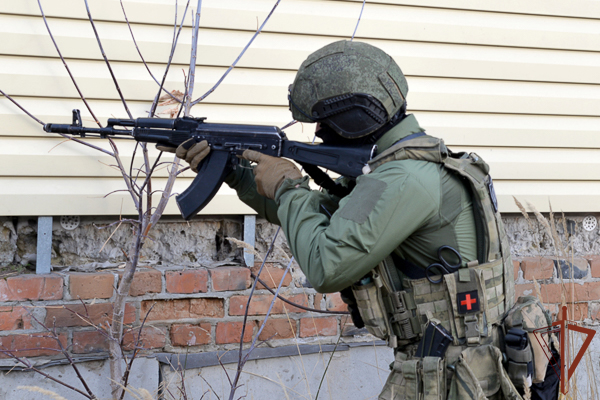 По замыслу учения, с помощью беспилотного летательного аппарата был осуществлен подрыв производственного цеха предприятия.
