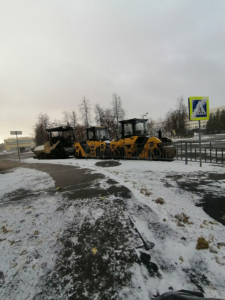Ну вот просто новейшие технологии, когда асфальт лучше уляжется именно на мерзлую землю. Ну, не совсем на землю, конечно, а на подготовленное многослойное основание (песок, щебень, битум и прочее). Даже без подсказок можно догадаться, что лучшее время укладки асфальта, это когда сухо и тепло. Этим летом, и даже осенью, было сухо. И очень тепло. Но асфальт почему-то не укладывали. А начали только сейчас, с первым снежком. Это воскресное утро, поэтому техника не работает. Вот ближе к обеду, наверное, начнут. Многослойность основания дорожники, конечно, соблюдают. Хотя, возможно, некоторые слои пропускают. Экономят. Ну и ещё фото. Интересно, как долго будет служить асфальтовое покрытие, уложенное в таких погодных условиях? Наверное, примерно столько же, сколько держалась штукатурка с краской на этом доме. Даже до кирпичной кладки всё отваливается. Ремонт дома производили в 2020 году. Следующий запланирован на 2025 год. А дом этот, в исторической части Дзержинска, хоть и не об