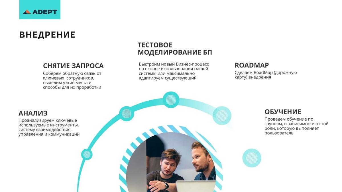 Специалисты Адепт каждый такой процесс начинают с согласования с заказчиком дорожной карты, содержащей перечень действий, метрики, сроки, регламенты, ответственных и т.п.
