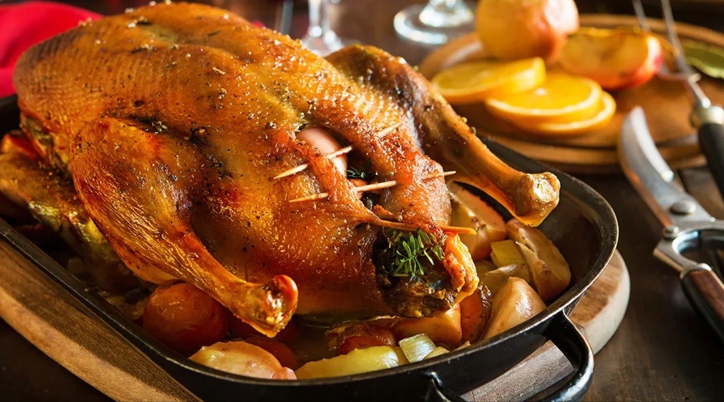 Запеченная утка в духовке — идеальное новогоднее блюдо. О том, как подготовить утку к запеканию, как нафаршировать и с чем подать, нам рассказал опытный шеф-повар Дмитрий Зотов.
