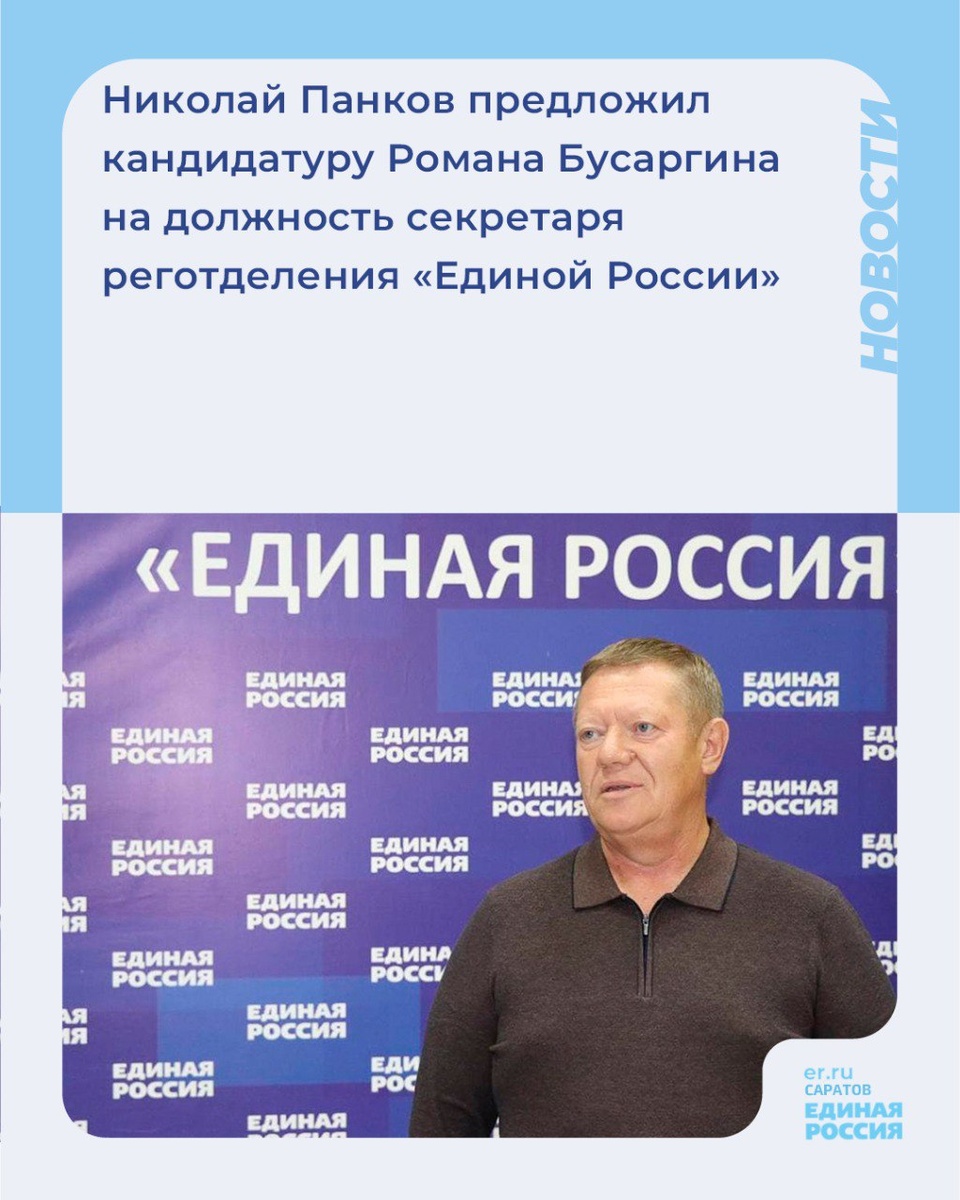 ✅Николай Панков предложил кандидатуру Романа Бусаргина на должность секретаря реготделения «Единой России»