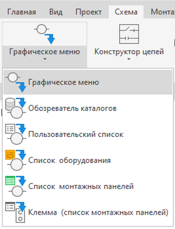 Иногда при создании проекта необходимо ограничить номенклатуру изделий, используемых в проекте. Например, новый проект создается на основании списка компонентов ранее созданного проекта или заказчик определяет список изделий для проекта. В этом случае компоненты удобнее выбирать не из графического меню, а из соответствующих списков. Для выбора компонентов из списков на панели «Вставить компоненты» вкладки «Схема» используются следующие инструменты: · Пользовательский список · Список оборудования · Список монтажных панелей · Клемма (список монтажных панелей) Инструменты Вставить компонент (выбор и размещение УГО из графического меню) и Вставить компонент (пользовательский список) можно запустить из отслеживающего меню. Для этого нужно щелкнуть правой кнопкой мыши по проводу и в появившемся отслеживающем меню выбрать Вставить компонент. После запуска команд Список оборудования или Список монтажных панелей и выбора изделия из списка, AutoCAD Electrical обращается к базе данных Schematic_l