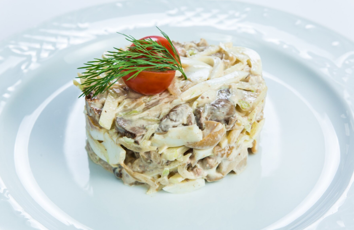 Праздничный рецепт на Новый год: Салат «Зимняя сказка» с курицей и грибами
