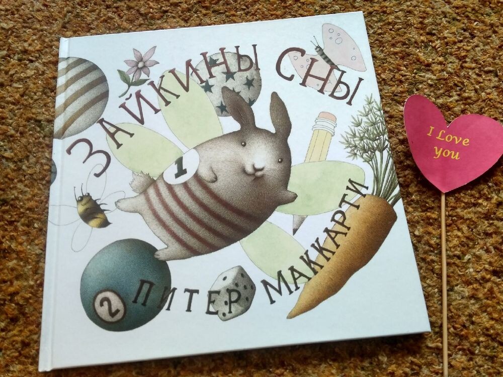 Зайкины сны Питера Маккарти. Квадратная светлая книжка с очень спокойной ненасыщенной пастельной цветовой гаммой. Обложка с частичной лакировкой. Матовая меловка.