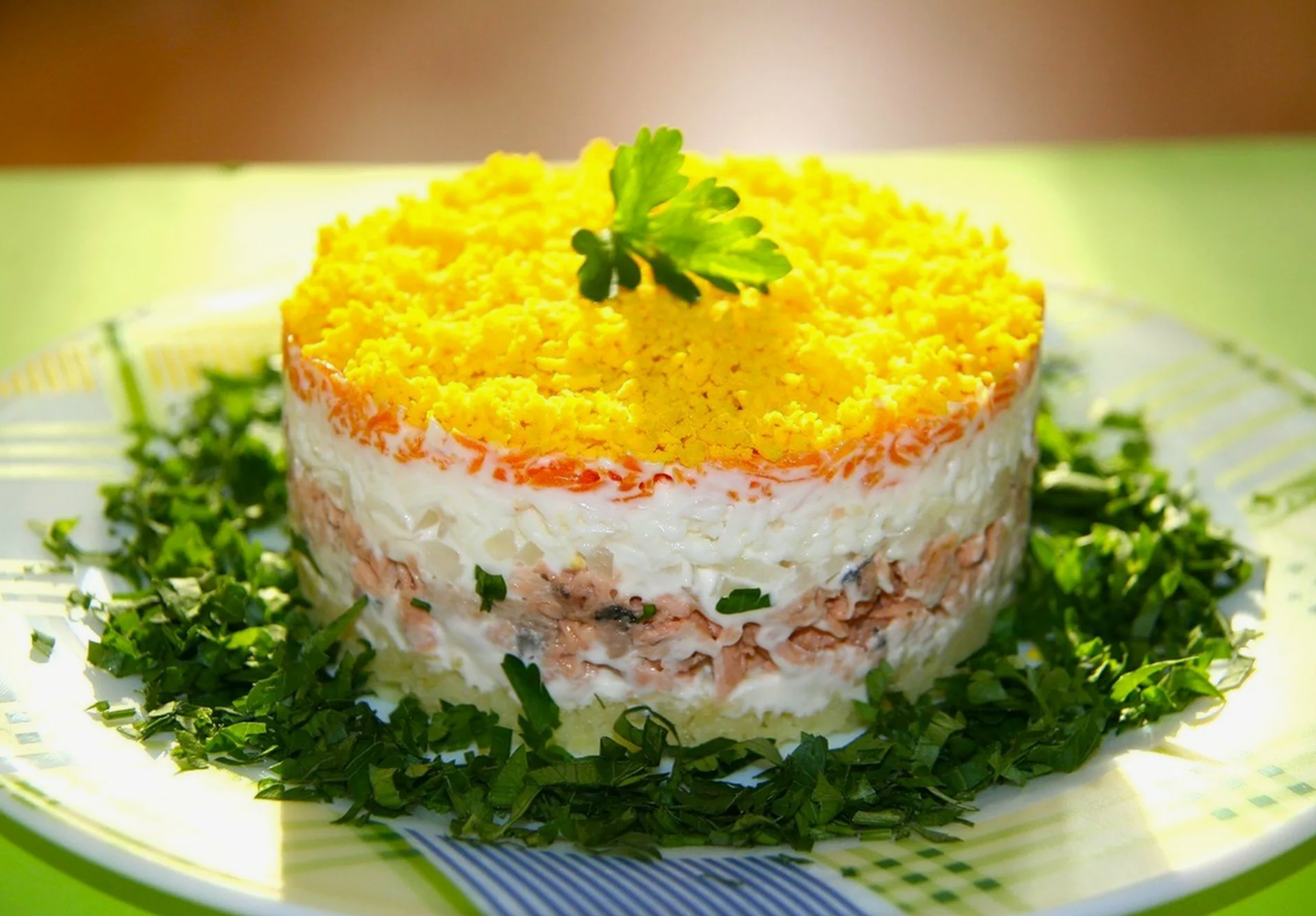 Новый год — это время, когда хочется побаловать своих близких не только праздничной атмосферой, но и вкусной едой. Одним из самых популярных и любимых салатов для новогоднего стола в странах СНГ является салат «Мимоза». Этот рецепт сочетает в себе простоту, яркость и великолепный вкус. И хотя салат «Мимоза» готовится довольно легко, он всегда вызывает восторг на праздничном столе. Сегодня мы рассмотрим, как приготовить этот чудесный салат с минимальными усилиями. Первым делом отварите картошку и морковь. Это можно сделать одновременно: поместите овощи в одну кастрюлю с холодной водой и доведите до кипения. Затем варите их 15-20 минут до мягкости. После варки овощи нужно охладить, очистить от кожуры и натереть на крупной терке. Яйца тоже нужно отварить вкрутую. Для этого залейте их холодной водой и варите 10-12 минут. После этого яйца нужно охладить, очистить от скорлупы и натереть на терке. Консервированный тунец слейте от жидкости и разомните вилкой. Если вы используете сельдь, ее тож