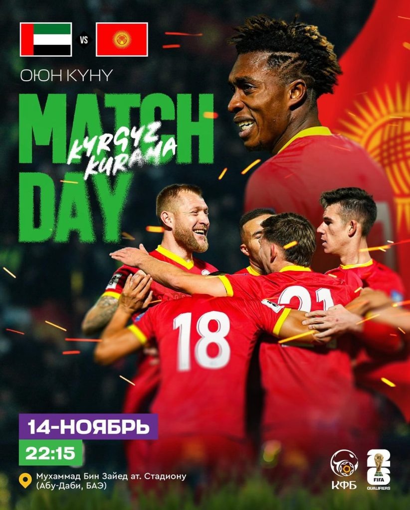 Футбол боюнча Кыргызстандын улуттук курама командасы 2026-жылдагы дүйнө чемпионатынын тандоо турунун алкагында БАЭ менен конокто беттешүүгө даярданып жатат. Команданын машыктыруучусу жана капитаны жакында Түндүк Кореяны жеңгенден кийин өз мүмкүнчүлүктөрүнө ишенет. ⚽️ Футбол боюнча Кыргыз курама командасы БАЭ менен маанилүү беттешке даярданууда. 🏟️ Оюн 14-ноябрда Абу-Даби шаарындагы Мухаммад Бин Зайед стадионунда өтүп, Бишкек убактысы боюнча саат 22:15те башталат. 💪 Машыктыруучу Максим Лисицын команда кысымга туруштук берип, жакшы жыйынтык көрсөтөөрүн белгилеп, оюнчуларына ишенет. 🏆 Команданын капитаны Валерий Кичин квалификациялык таблицадагы позициясын жакшыртуу үчүн колдон келгендин баарын жасай турганын баса белгиледи. 📅 Тандоо раундунун башталышында үч жолу жеңилүү ызасын тарткан Кыргыз курамасы 15-октябрда Түндүк Кореяны утуп, алгачкы жеңишине жетишти. 🌍 Тандоо турниринин 3-туруна 18 команда катышууда, анын ичинен эң мыкты экөө гана 2026-жылкы Дүйнө чемпиондугуна түз жолдомо