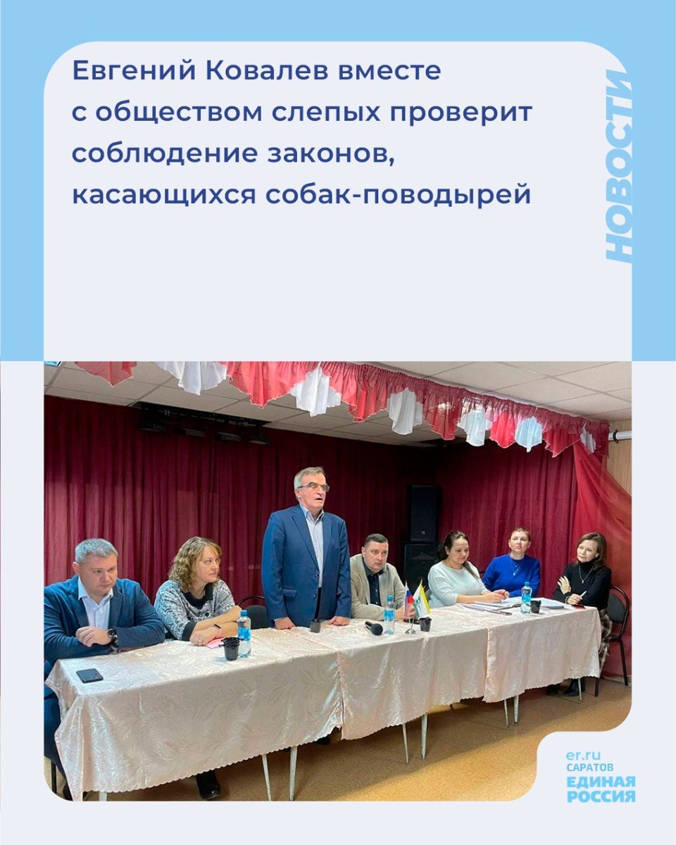 ❔В Международный день слепых, который отмечается 13 ноября, Саратовская областная организация общества слепых организовала обсуждение накопившихся вопросов в формате круглого стола. Участие в нем принял депутат Саратовской областной Думы, региональный координатор проекта «Единая страна – доступная среда» партии «Единая Россия» Евгений Ковалев. Он отметил, что эта дата призвана привлечь внимание людей к тем, кто навсегда потерял зрение и оказался в трудной жизненной ситуации. 💬«В ходе обсуждения прозвучало много вопросов. В том числе важным является отношение общества к собакам-поводырям. Не пускают в общественный транспорт, пускают в кинотеатры «в качестве исключения». То есть исполнение федерального законодательства называется исключением и уступкой. Со своей стороны готов организовать мониторинг исполнения законодательства с привлечением инвалидов по зрению и собак-поводырей с дальнейшим направлением в прокуратуру запросов о привлечении к ответственности», – отметил Ковалев.
