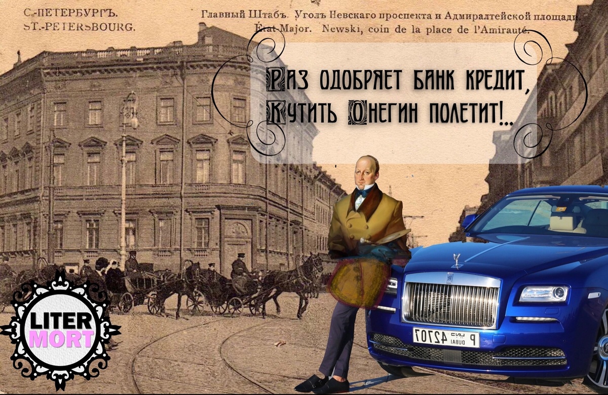 Представьте себе человека лет 45-50, который ни одного дня не работал, весь пассивный доход которого поступал от доставшихся по наследству участков, который вдобавок брал кредиты в банках и не отдавал. Это отец Онегина. На что он тратил кредиты? На дорогую одежду, еду и балы. На изящество. Сегодня это была бы одежда брендов класса “люкс”, дорогие кожаные туфли на заказ, швейцарские часы, 3 раза в неделю — лучший салон красоты. Лучший транспорт — коляска и крытый экипаж с хорошими конями. Что альтернатива коням сегодня? Конечно, машина. На кредитные деньги отец Онегина купил бы машину представительского класса, хорошую, миллионов за 5. На работу ему ездить не надо (это феномен так называемых "дворянских вольностей", когда господа уклонялись от службы под предлогом этих "вольностей") — он бы просто ездил на ней “на прогулку”. При этом он держал бы отдельного слугу для ухода за машиной. Утром (после 12 то есть) отец Онегина выходил бы к гаражу, слуга выкатывал бы машину, и отец Онегина говорил водителю: