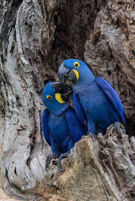 1. Гиацинтовые ара ( лат. Anodorhynchus) - род птиц семейства попугаевых. Гиацинтовый – перьевой окрас насыщенного гиацинтового цвета, хвост и изнанка крыльев графитового оттенка. Область глаз и клюва обведены желтыми полосами. Это самые крупные представители ара, достигающие метра и более, а их вес часто превышает 1.5 кг. Обитают в ряде стран Южной Америки: в Парагвае, Аргентине, Уругвае и Бразилии.