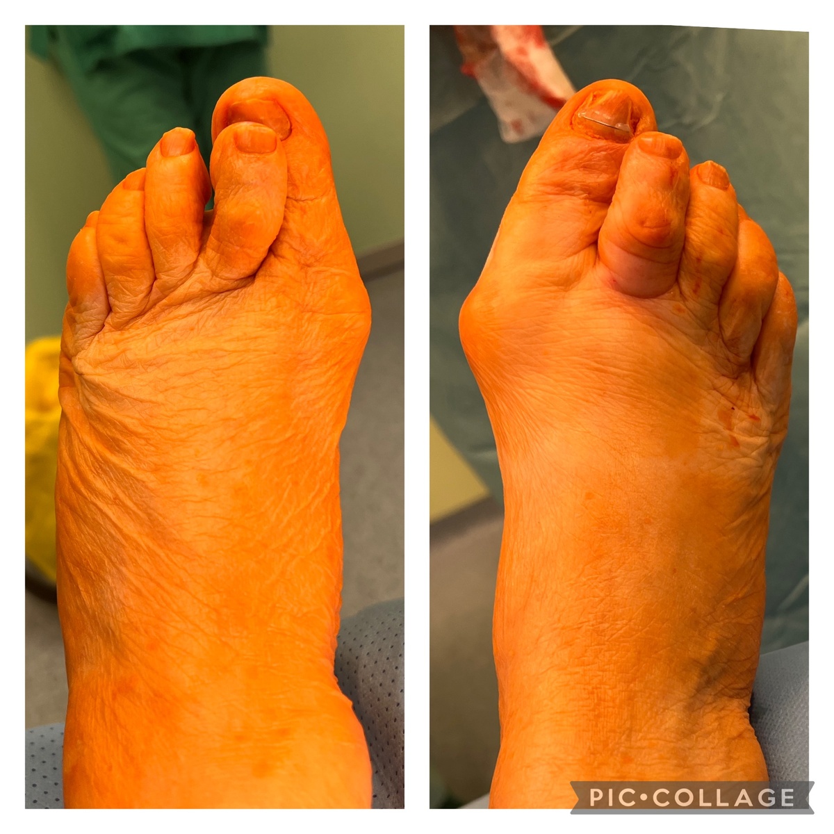 Как вы думаете, что можно сделать с пальцами стоп пациентке 90 лет, если обувь носить - проблема, а на большую операцию с наркозом/спинальной анестезией страшно/не пускают терапевты/родственники и т.д.? Такое бывает очень часто. Наши советские женщины в большинстве своём неприхотливы в отношении себя, сплошь и рядом до такого состояния запускают свои стопы, что уже даже пресловутая «Прощай, молодость» не налезает. Происходит это обычно ближе к 80, и позже. Был у меня в практике случай, когда пациентке за 80 пришлось ампyтирoвaть второй палец! Он был молоткообразно согнут, постоянно натирался в обуви, и однажды в ранку попала инфекция. С этого момента хроническое воспаление тканей пальца не прекращалось, он стал толщиной с сосиску, бордовый, горячий, из ранки постоянно подтекало отделяемое. За такой палец в преклонном возрасте бороться нет смысла, и перспективы не очень. Пришлось им пожертвовать. Если же воспаления нет, и пациент страдает, но по любой причине не может пойти на полноцен