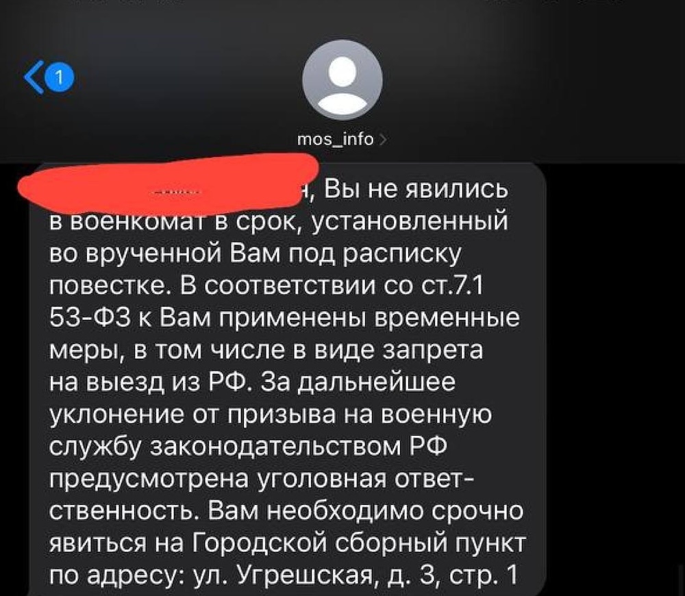 В Москве призывникам начали приходить уведомления об ограничениях за неявку по повестке