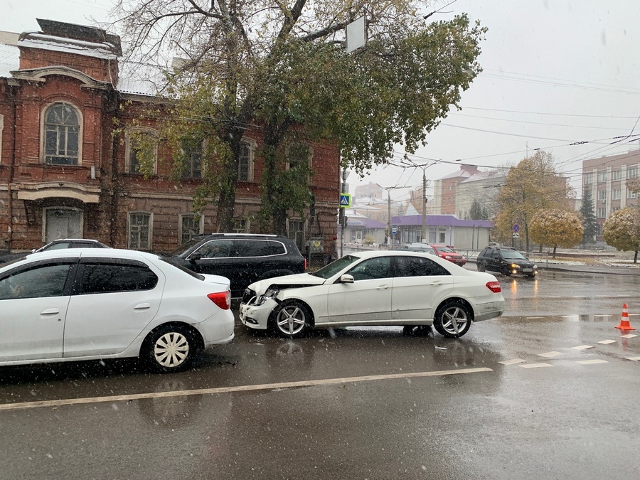 Утром 14 ноября в Курске выпал мокрый снег. На скользкой дороге уже произошло множество ДТП.