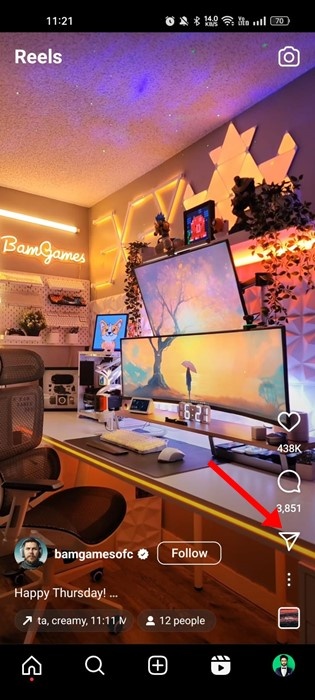 2. Теперь откройте видео reels, аудио которого вы хотите загрузить.