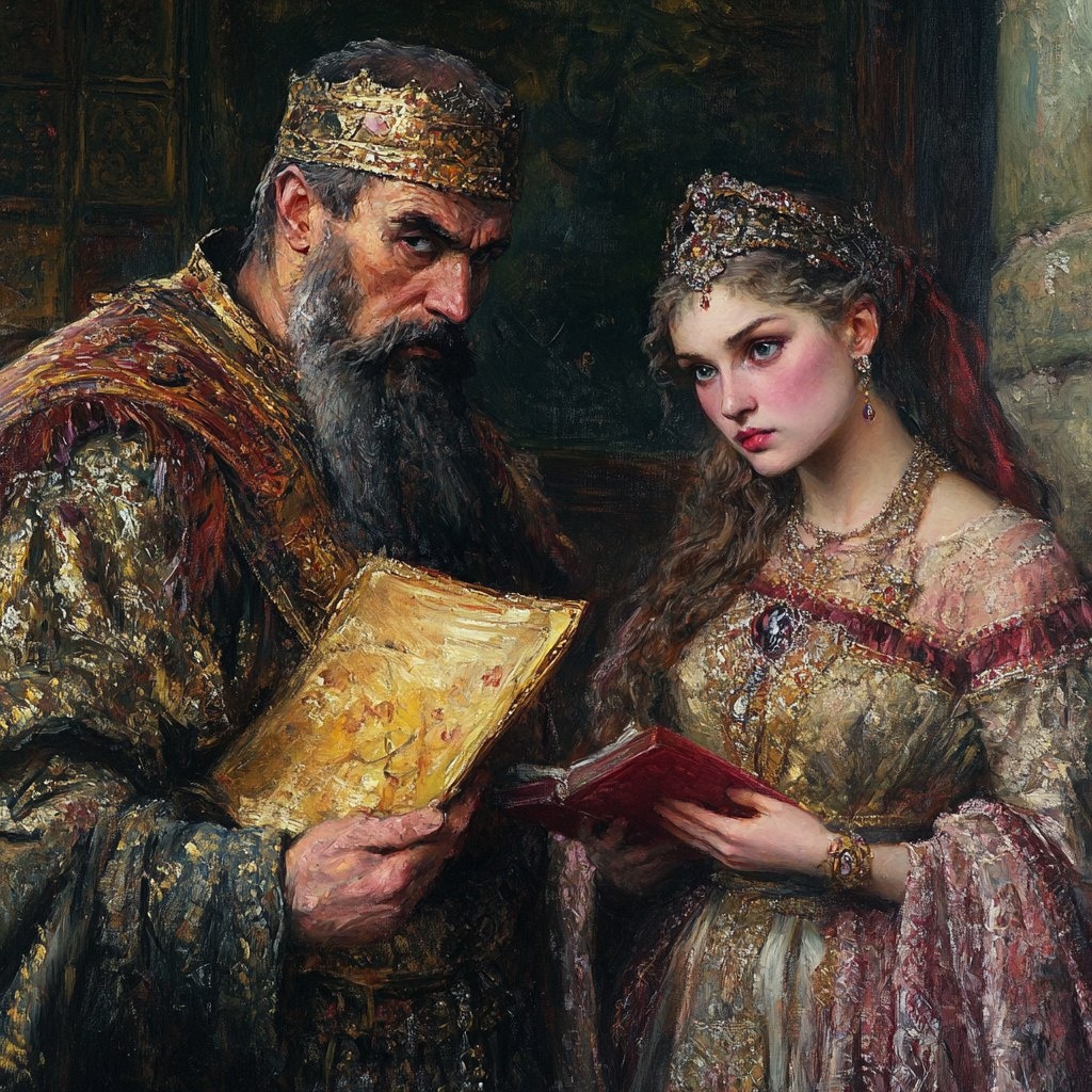 Марию собрали, нарядили, да и повезли к царю. Здесь боярышне предстояло проявить себя, показать Ивану Васильевичу и красу свою, и благочестие. По приказу отца, Мария, стыдливо опустив прекрасные глаза, подала царю чарку вина. Грозный смотрел пристально, но не было понятно, доволен ли государь.