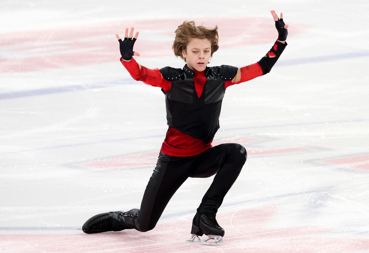 Михаил Тихонов. Тренер Светлана Соколовская. 2А - чисто. Флип - чисто. Каскад - чисто. Неинтересно уже смотреть на выступления фигуристов, у которых нет тройного акселя. Хочется борьбы. А её здесь нет.