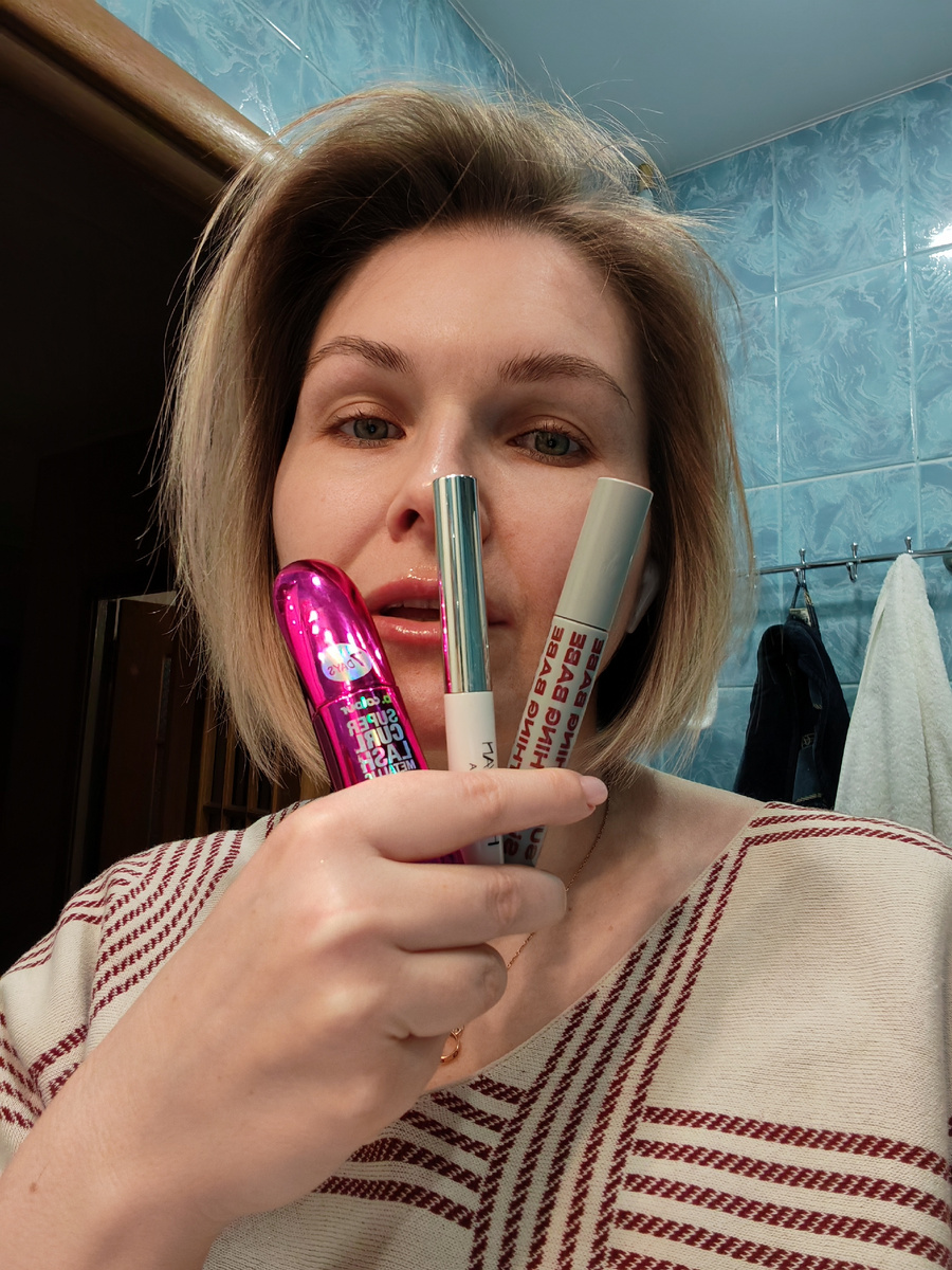 Я протестировала три цветные туши для ресниц для того, чтобы найти ту, которая хотя бы минимально покрасит ресницы. Мне очень нравится тема ярких ресниц, потому что у меня неконтрастная внешность и очень яркий макияж меня старит, а вот лёгкий акцент в виде цветных ресниц — идеальный вариант. Поэтому ищу. Один из вариантов я показывала, но покажу ещё раз, ведь не все прочитали ту статью. Итак, первая тушь — от Rad. Её я купила у перекупщиков на Ozon в два раза выше заявленной стоимости в магазине. И да, это очень распиаренный продукт. Эта тушь — как молодой человек обещает жаркую ночь, а по факту оказывается спринтером. Ожиданий от туши было много, не зря же её в ЗЯ раскупают, а по факту... Ресницы тушь не удлиняет, цвета нет, ничего нет. Для туши за 1000 рублей это слишком печально. Сказать, что я была расстроена, ничего не сказать. Я эту тушь 10 дней ждала! Но решила, что буду искать, и заказала на Ozon ещё две цветные туши. Одну — от бренда 7days, я раньше этой косметикой ни