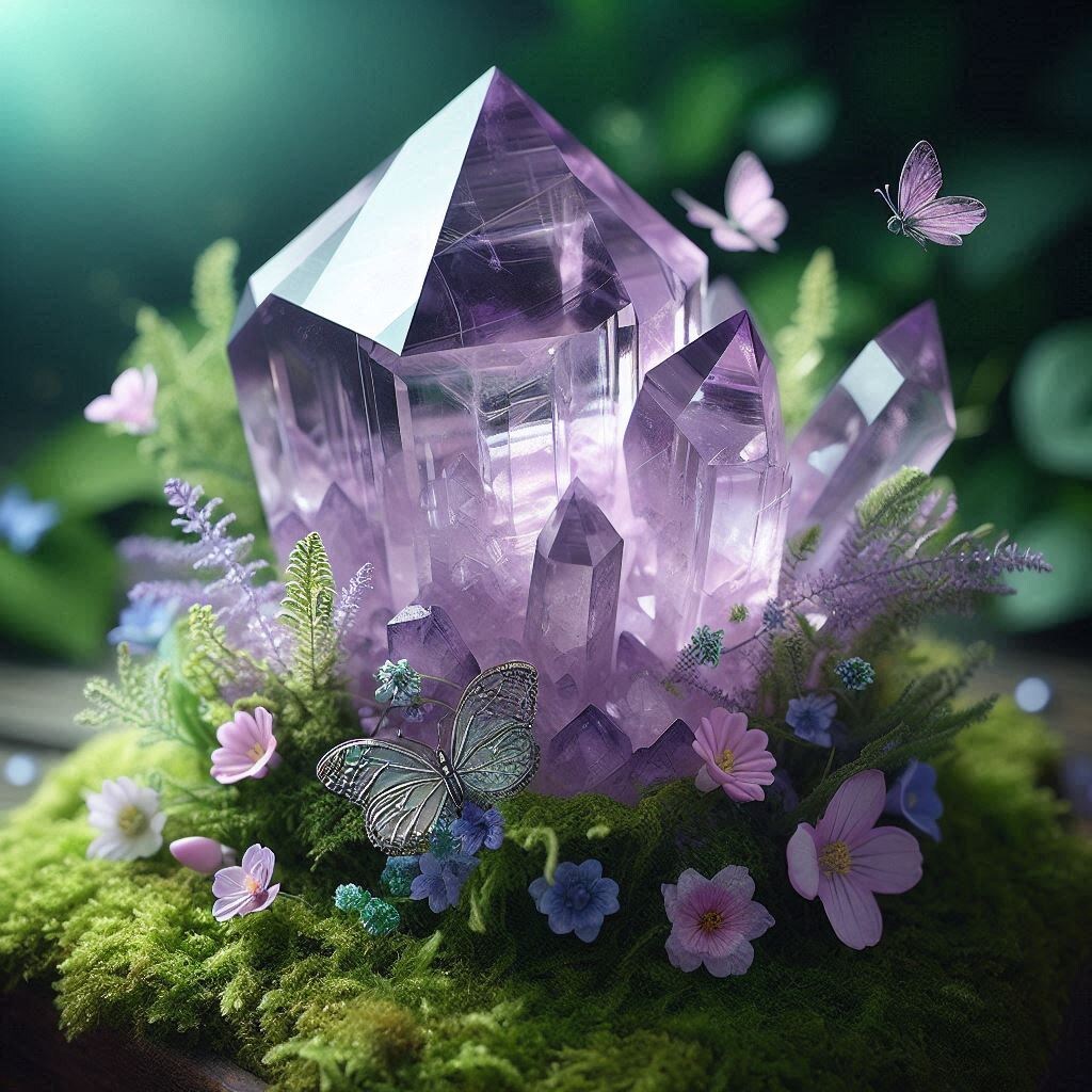 Давным-давно, в далёком волшебном царстве, жили люди, для которых камни и кристаллы имели особое значение. Среди всех камней особое место занимал аметист. Этот фиолетовый самоцвет был известен своими мистическими свойствами и считался даром богов. В этом царстве жила юная девушка по имени Элия, которая была дочерью мудрого старейшины. Однажды, когда Элия гуляла по лесу, она наткнулась на старинную пещеру, которую никто раньше не замечал. Любопытство взяло верх, и она вошла внутрь. Там она нашла огромный аметист, который светился мягким фиолетовым светом. Когда Элия прикоснулась к камню, она почувствовала, как её сознание окутывает теплом и покоем. Голос, казалось бы, из самого камня, прошептал ей: "Ты избрана, Элия. Твоя душа чиста и открыта для мудрости Вселенной. Сила аметиста поможет тебе открыть истину и исцелить тех, кто в этом нуждается." Элия поняла, что она обрела не просто камень, а настоящий дар. Вернувшись в деревню, она начала использовать аметист для медитаций и исцелени