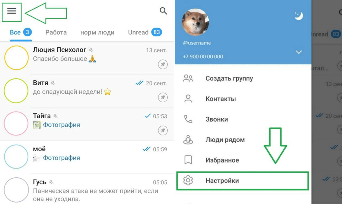 Шаг 1. Откройте Telegram и нажмите на три полоски в верхнем углу слева. Перейдите в раздел «Настройки».