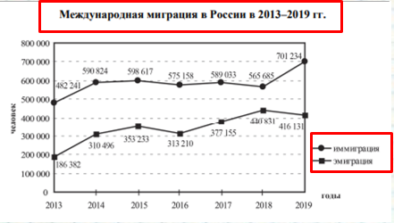(В 2015 году показатель эмиграции составил 353 233 чел., иммиграции- 598617 чел., в 2019 году показатель эмиграции - 416131 чел., иммиграции - 701234 чел.