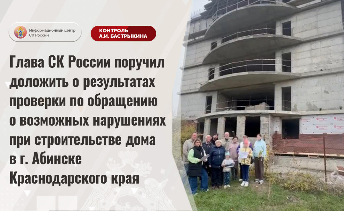 Глава СК России поручил доложить о результатах проверки по обращению о возможных нарушениях при строительстве дома в г. Абинске
