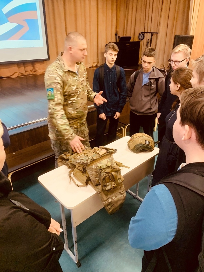 На встрече старшеклассники обсудили несколько важных вопросов. В их числе: как ведёт себя человек, оказавшийся в экстремальной ситуации; что такое настоящая дружба; патриотизм — чувство, которое невозможно навязать, но которое можно воспитать, правильно направив человека; гуманитарная помощь — реальная помощь на фронте.