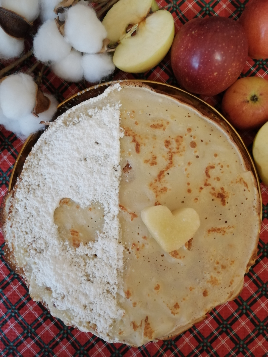 Блинчики - любимое блюдо нашей семьи 🥞 Всевозможные вариации испробованы и пришло время делиться своими вкусными находками с вами. Я готовлю исключительно простые блины, возни с ними нет абсолютно никакой, поэтому приступим. Игридиенты: 🔸Молоко - 500мл. 🔸Яйца - 2шт. 🔸Сахар - 2ст.л. 🔸Соль - щепотка 🔸Мука - 200гр. 🔸Масло растительное - 1ст.л. 🔸Яблоко - 1-2шт. В глубокой миске смешиваем молоко и яйца. Добавляем к ним соль и сахар, размешиваем венчиком до полного растворения. К жидкой смеси порционно добавляем муку и размешиваем до полного исчезновения комочков. Добавляем растительное масло, перемешиваем. Яблоки очищаем от кожуры и натираем на крупной терке. Добавляем натертые яблоки к блинной смеси и хорошо перемешиваем. У нас получается нежная, пористая смесь для блинов с вкраплением тертых яблок. Можно приступать к выпеканию наших блинчиков. Нагреваем сковороду и смазываем её маслом для жарки. Много масла добавлять не нужно,лишь слегка смазать полностью. Когда сковоро