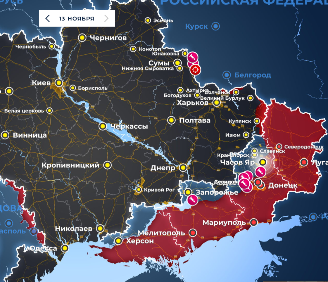 Вон только недавно наши парни совершили марш бросок и ворвались в Купянск преодолев около 5 км. за час. Скоро будут стеллу в триколор перекрашивать. С такой скоростью Киев ближе, чем кажется, а Запорожье и Днепропетровск вообще на расстоянии вытянутой руки. Ранее я предполагал, что движение армии России в ближайшее время будет к реке Днепр. К городам Запорожье и Днепропетровск. Так оно и получается. Прогнозы сбываются. Недавно ВСУ взорв