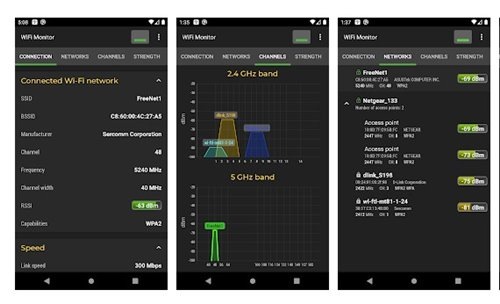 WiFi Monitor — это приложение для Android, которое помогает анализировать вашу сеть Wi-Fi. Оно может сканировать вашу сеть Wi-Fi и показывать уровень сигнала, частоту, скорость соединения и т. д.