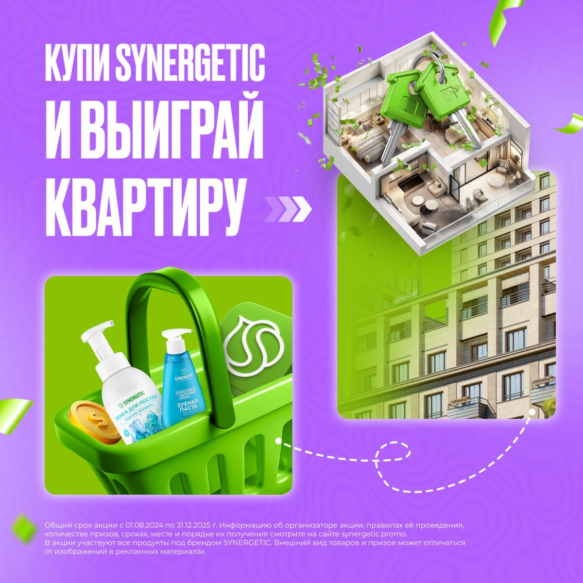 В мае 2023 года SYNERGETIC запустил программу лояльности, за участие в которой можно выиграть крутые призы от наушников до модного смартфона. А сейчас и побороться за суперприз — квартиру! Читайте в статье про программу, простые условия участия, призы и о том, как повысить свои шансы на победу. Победителями стали уже больше 14 000 человек! Присоединяйтесь к ним и вы. Как все начиналось Мы уже более 10 лет производим экосредства и натуральные уходовые продукты. Они помогают заботиться о любимых домах, а ещё о себе и своих близких. А мы заботимся о людях и планете: составы средств безопасны даже для чувствительной кожи, а упаковку от них можно сдать на переработку. Сортировка отходов — простая привычка, которую может внедрить в свою жизнь каждый. А еще — один из самых простых способов помочь планете. Представьте, а если все больше людей будет заботиться о планете вот так шаг за шагом? Так мы решили запустить программу лояльности, которая поможет планете, а участникам подарит ценные приз